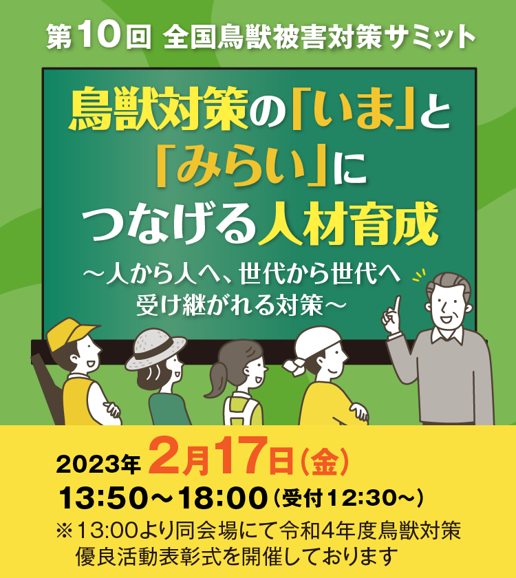 今サミットは久しぶりの実開催となっておりますので、対面での鳥獣対策に係る情報共有や意見交換の場として、是非、ご活用ください。